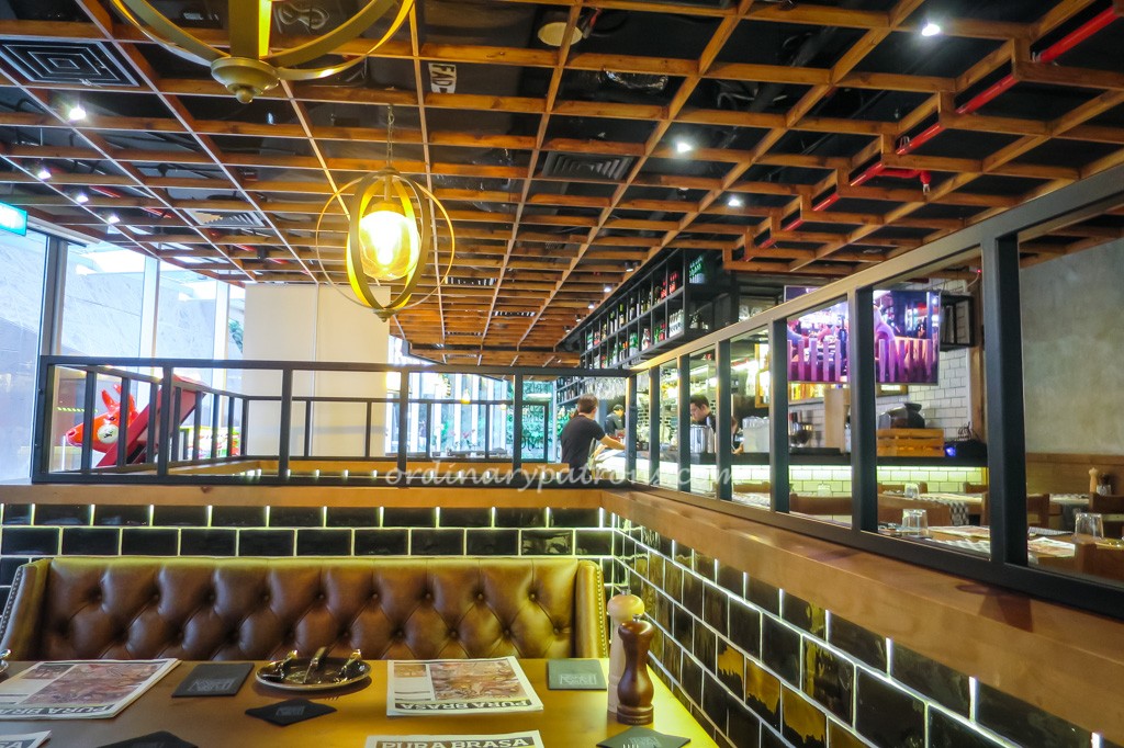 A life-sized red cow welcomes visitors at the entrance to Pura Brasa Singapore. Located on the ground floor, it is easily accessible from Tanjong Pagar MRT station which is just below Tanjong Pagar Centre. The decor is done up in a casual, country-style. It looks like a relaxed kind of place for some casual dining or to have drinks after work.