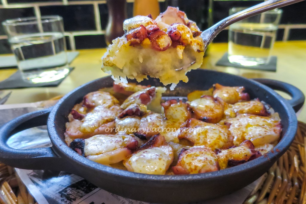 The meal started with the octopus casserole ($20). Cut pieces of the octopus tentacle topped a base of mashed potatoes in the casserole. The taste of this dish was very good.