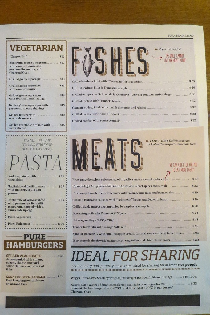 We had lunch recently at Spanish restaurant Pura Brasa Singapore in Tanjong Pagar Centre. It is the local branch of Pura Brasa, a restaurant which has several outlets in Spain. According to their international website, it “is a new high quality restaurant concept, which combines the characteristics of traditional healthy cooking, i.e charcoal-grilling using JOSPER® technology, with a novel formula of understanding the act of eating, or simply enjoying some tapas ….“