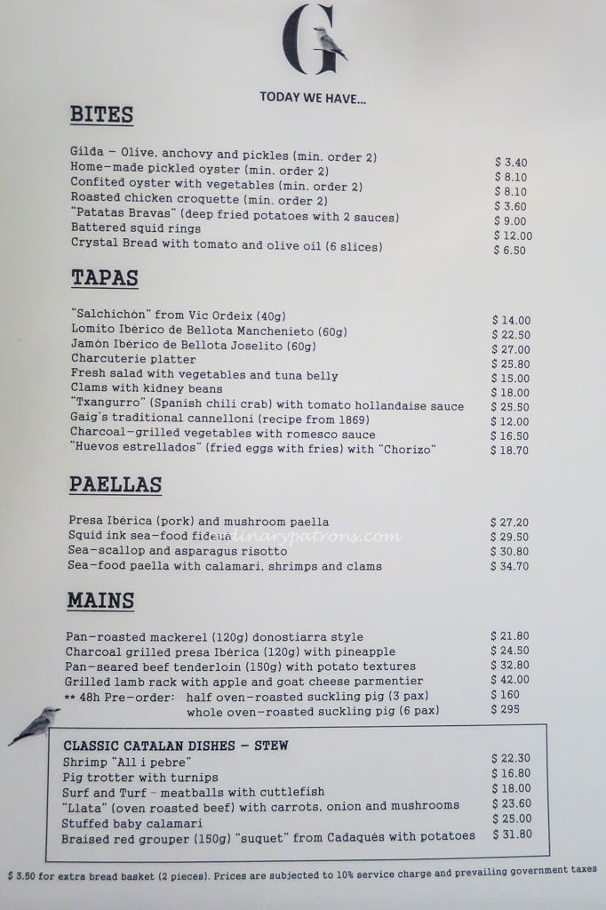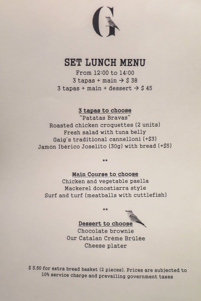 The Gaig Restaurant Singapore Menu contains the familiar favourites of Spanish cuisine like Paella, Jamon Iberico and classic Catalan dishes. Here are pictures of the Gaig Restaurant Singapore set lunch menu as well as pages from the ala carte menu.