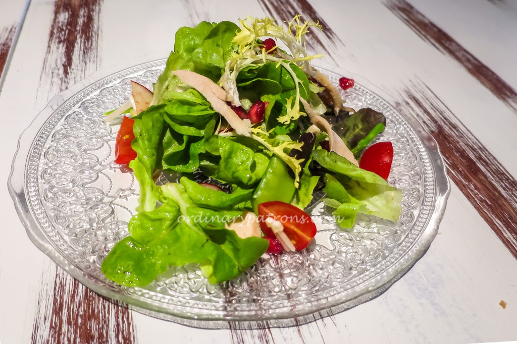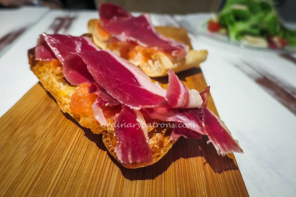The salad was quite average. The few pieces of tuna belly played hide and seek with us in the pile of fresh vegetables. The rest of the tapas were all better choices. The jamon attracted a surcharge of $5 but was very good. The chicken croquettes also received high marks.