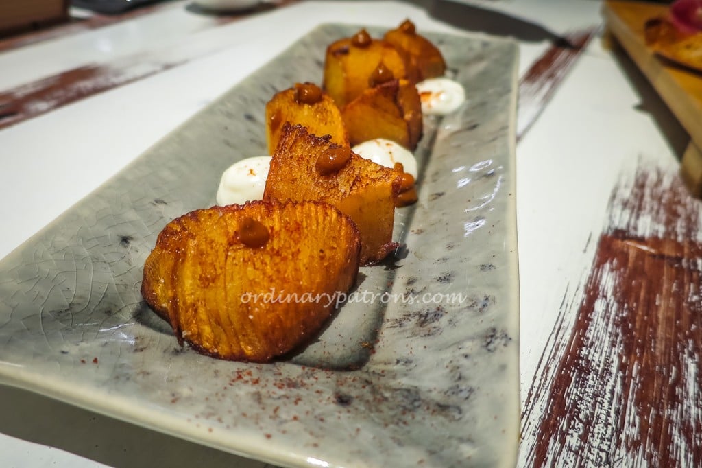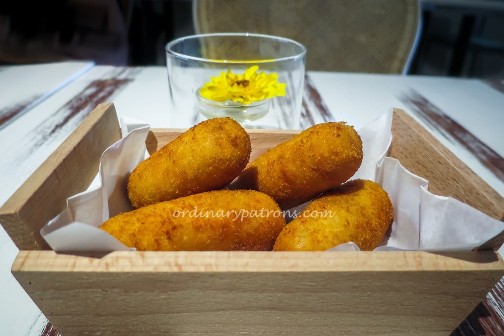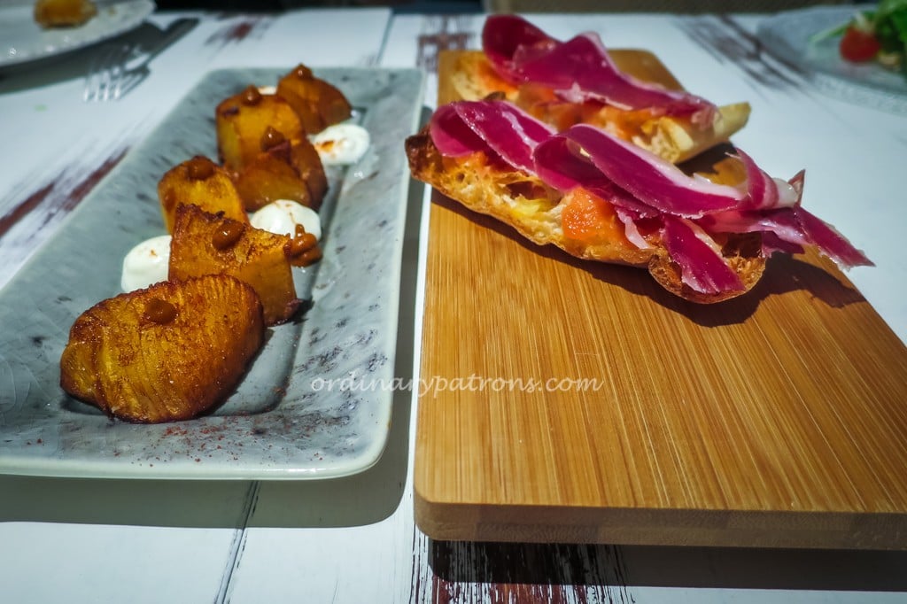 We had two 3 Tapas + Main Lunch sets ($38 each) and a separate mains order. For the set lunch we had a choice of three tapas, out of five available, for each set. Â These were the tapas we tried – fresh salad with tuna belly, patatas bravas, roasted chicken croquettes and Iberian ham.