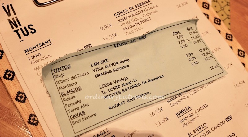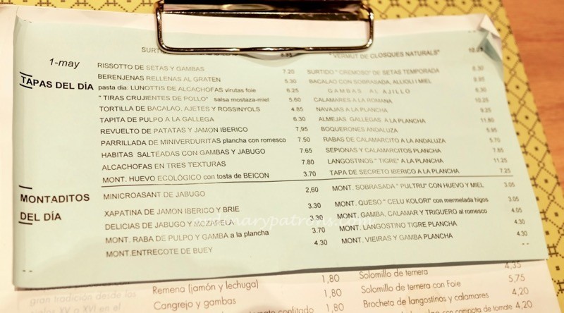 We were happy to finally eat at Vinitus Barcelona, the tapas bar that was always crowded. There were hits and misses in the food, but it is clear what was drawing in the crowds. The very reasonably priced menu. The total cost of our tapas and three drinks was about 35€ !