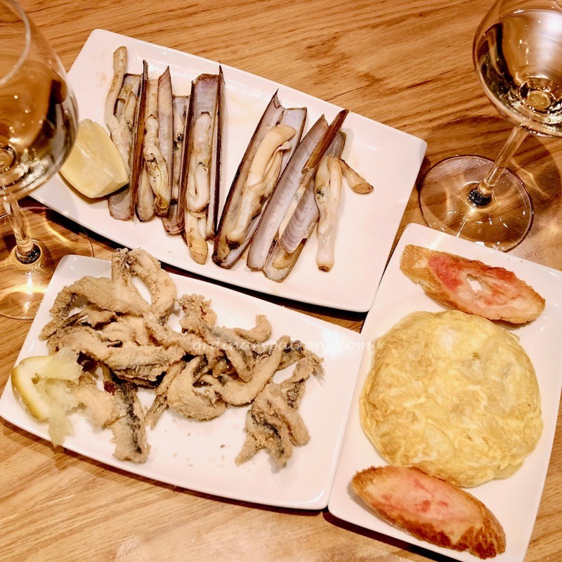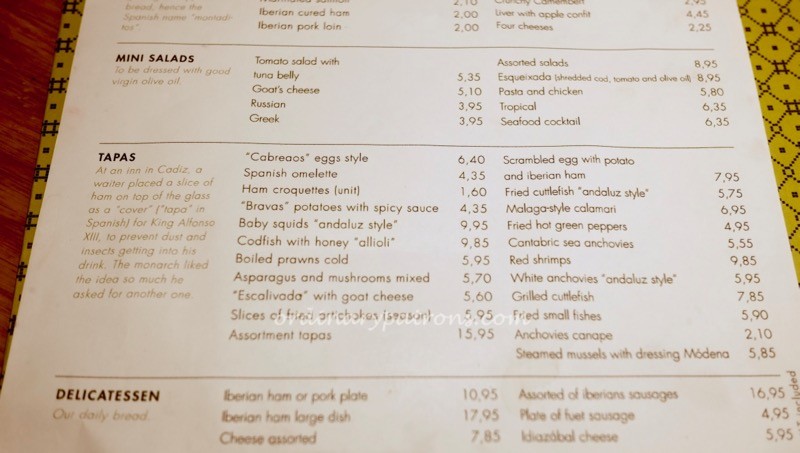 The wines by the glass selection was limited, but reasonably priced at around 3€ per glass. We had some white wine to go with our tapas. The fried anchovies (5.95€) were tasty and fresh. The Spanish omelette (4.35€) was rather bland.