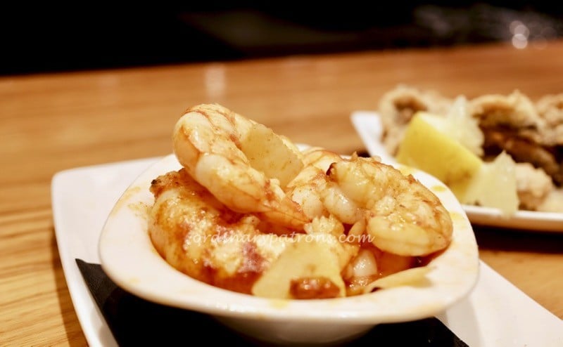 The prawns with garlic is a classic tapas bar item. The prawns were good and fat but the garlic content was low. Still, it was a good value tapas item that was priced at 6.30€ .