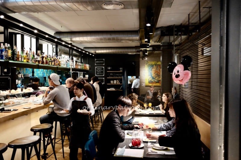 At about 6 pm on a weekday, Vinitus Barcelona was quiet and there was no queue to get in. We made an unscheduled stop as we could not let such a chance pass us by. We asked for bar counter seats which provided a higher vantage spot to watch the proceedings.