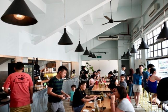 We started at an old building – the former Singapore Badminton Hall at 100 Guillemard Road. This was where many badminton battles took place. It is now used as a gymnasium and rock climbing facility. We started our food tour of Geylang with brunch at Brawn & Brains cafe on the ground floor. We ate too much. We suggest just having the cappuccino and the curried chicken wrap ($12.50) which can be shared by two people. You can read about our visit to Brawn and Brains here.