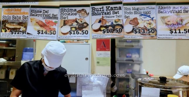 There is a regular menu at Nakajima Suisan.  But what many people do is to select the specials displayed at the counter. The Japanese descriptions of the types of fishes were mostly unknown to me, which is a good thing as it would be good to try new items. I selected the most unfamiliar item – Kinme Dai Saikyo Yaki Set ($14.50). Apart from the fact that it is a grilled fish dish, I had no clue what I was ordering.