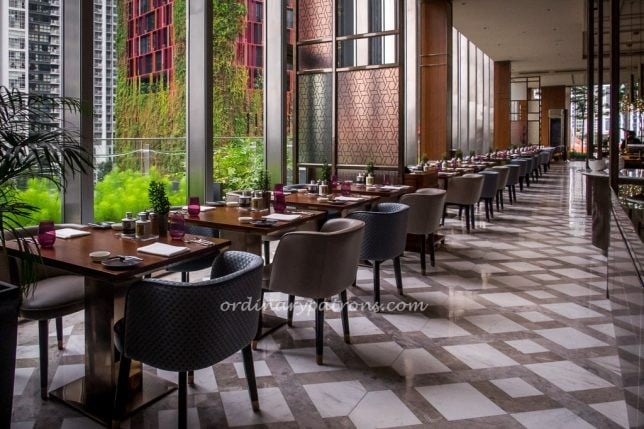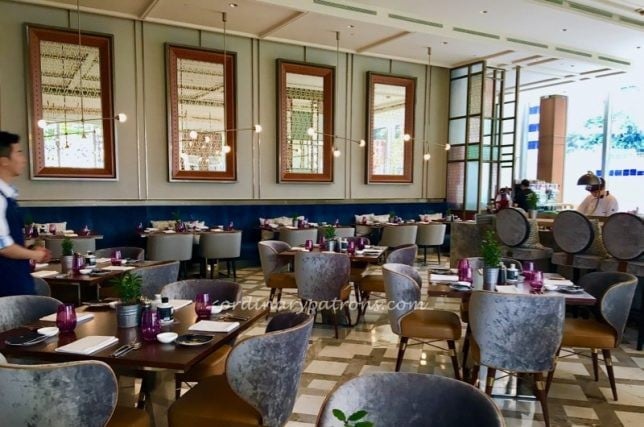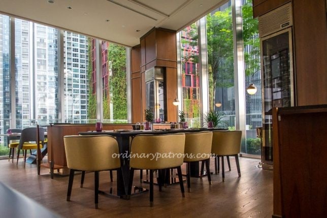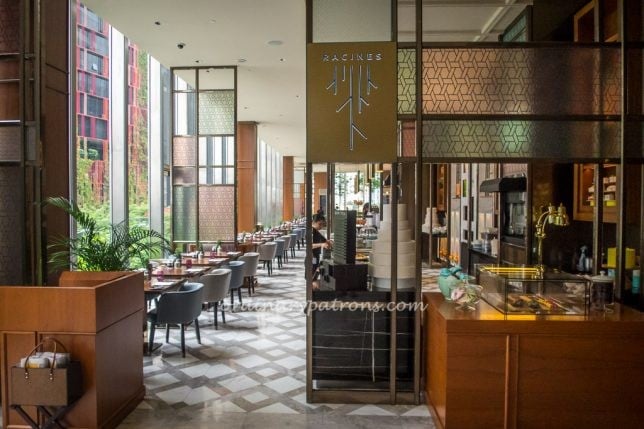 The fifth floor of the Singapore hotel houses the hotel reception, the lobby bar and the Racines Sofitel restaurant. The restaurant serves buffet breakfast in the mornings and only opens for lunch from 12 noon. In case you are early, having a drink or two at the lovely lobby bar outside is a pleasant place to pass time. You can read about our visit to the 1864 Bar here.