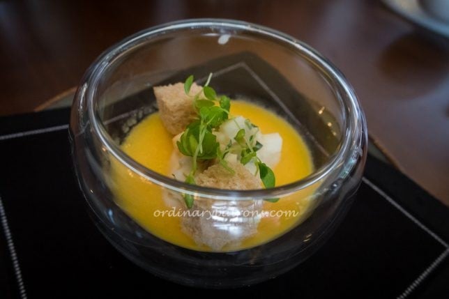 The meal starts with an amuse bouche. It was made of pumpkin, carrot bits and other things that I could not remember.