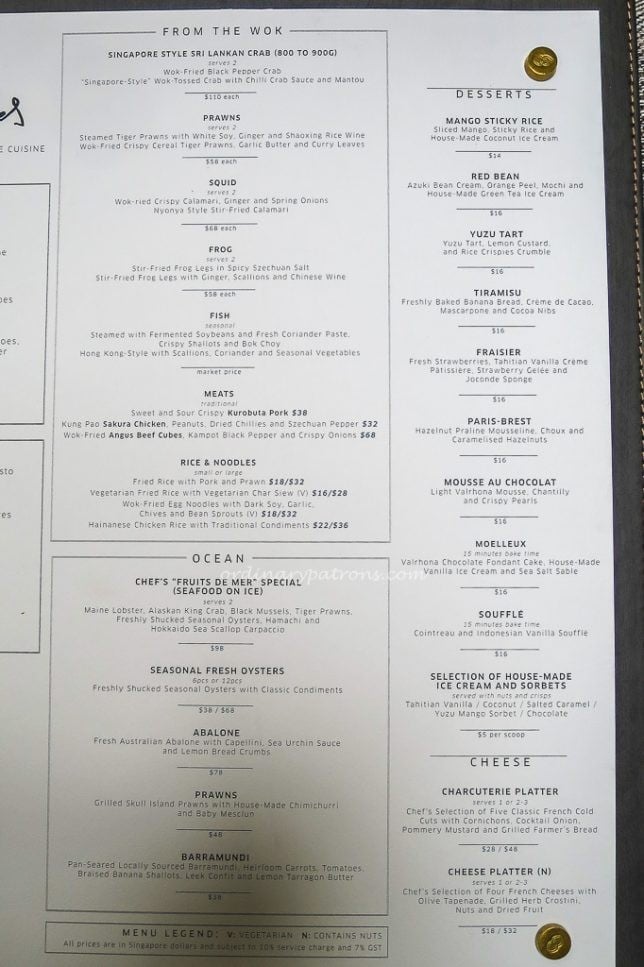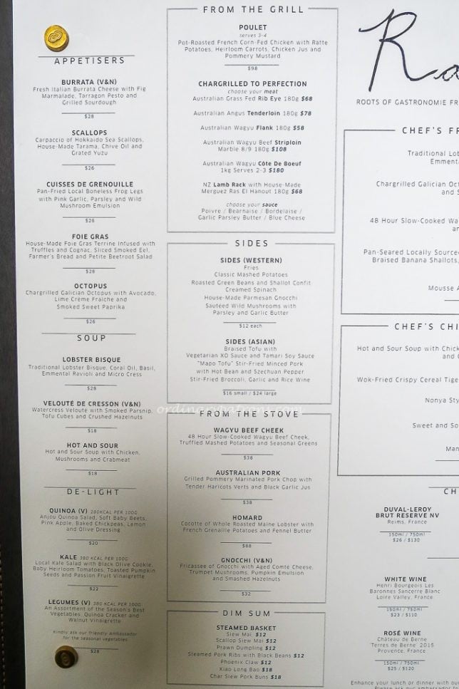 The Racines Sofitel menu