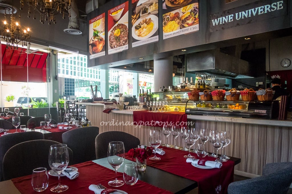 Wine Universe Millenia Walk Singapore is a restaurant, wine bar and retail-cellar. According to their website, itย is a joint venture by a Swiss vintner, Dominique Giroud and Swiss owner, Claude Dizerens. Dominique is also the man behind Wine Universe, a leading wine retailer and brokerage in Switzerland. The Swiss heritage is also discernible from the Swiss items on the food menu and wine list.
