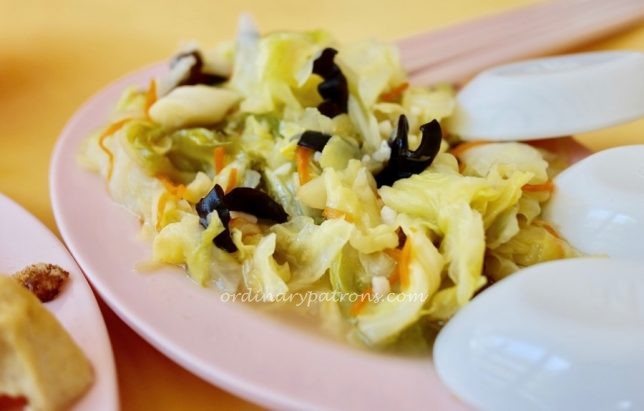 The selection of dishes available at Ghim Moh Porridge & Rice is quite limited. There are usually one or two types of steamed fish and less than ten other dishes. The fishes are popular and will sell off quickly. The cabbage and braised dark soy sauce pork (loh bak) are the two items we often order.