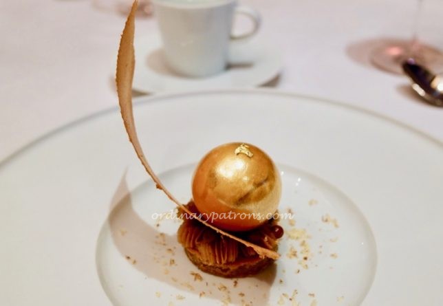 There were four types of dessert and a cheese platter to end the meal. Here are pictures of all of them. The Williams pear poached in infusion of star anise and the sugar sphere with glaced marrons (candied chestnuts) in different textures were the favourites. These were the best desserts we have tried in a while.