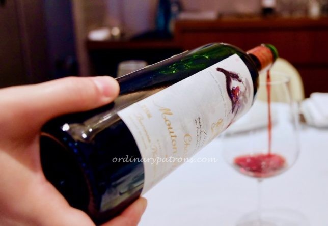 The wines served at lunch was 2011 Egon Müller Scharzhofberger Riesling Kabinett and 1996 Chateau Mouton-Rothschild. The latter tasted amazing fresh for something which has spent 21 years in a dark bottle. So many things have taken place since 1996 while this wine was slumbering. Les Amis has a “1 for 1” corkage policy – purchase a bottle from them and you can bring one from home. Which seems like a good compromise for the restaurant to make some wine revenue and diners to bring a favourite bottle to town.