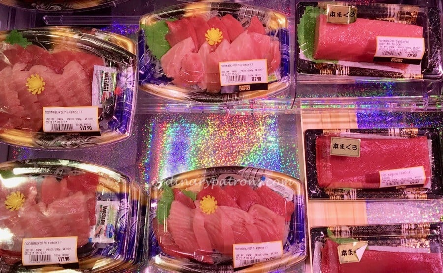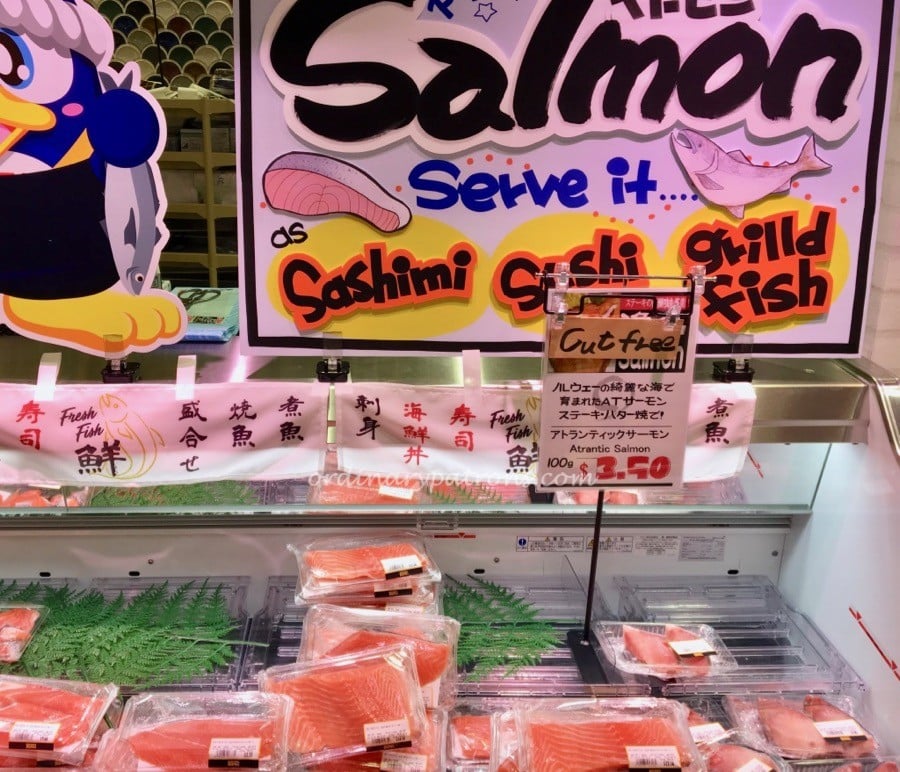 No Japanese supermarket will be complete without the seafood section. We found lots of raw fish options, especially salmon. This will be a crowded place when people shop for raw fish for the Chinese New Year yu sheng dishes.