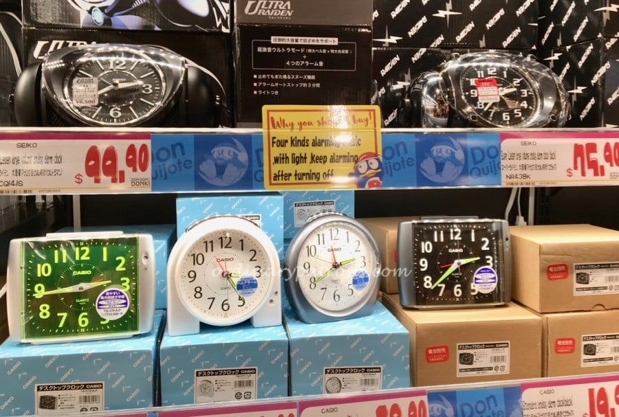Now we take you one level upstairs to basement one. Here you can find household items, clothes, toys, snacks and health food. There is a large collection of alarm clocks. Here are pictures of some of the things (including the most disgusting drink from Japan) on display.