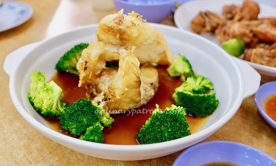 We had two of their famous dishes that day – claypot yong tau fu, prawn paste chicken (har cheong kai). We also a beef hor fun and a daily special that day – crisp fillet of grouper. Â We normally are hesitant to order seafood dishes that are off the menu and “market priced”. But we had no concern at Kok Sen. Â The dish turned our to be reasonably priced. The fish was very fresh and lightly fried till a crisp surface formed but the insides were perfectly moist.