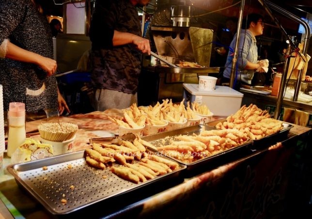 Raohe Night Market is located at the north-eastern part of central Taipei. We were there at about 5.30pm, just when the sun was about to set. The early stalls were already up and running. Those stalls who choose to open later were only starting to come to life. There were enough food varieties to please almost anyone. Deep-fried or roasted seafood and meats, soups and traditional Taiwanese food and even beauty treatments like threading facial hair. There is of course the smelly tofu seller which we could sense several stalls away. There is enough to keep us interested in Raohe Night Market. The market takes up the whole of Raohe Street which is about 150m from one end to another. There are shops on two sides and two rows of stalls back-to-back in the centre. Just browsing the stalls in both directions will take one hour.