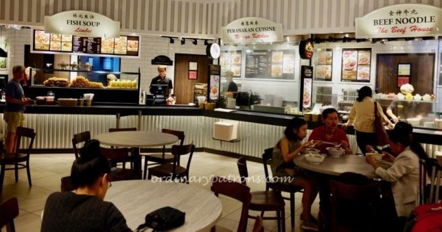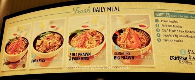 Geylang Prawn Noodle T4 is located deep inside the food court in the public area on the level 2 of Terminal 4. Â Food Emporium is the name of the food court. It is a nice looking food court but looked rather quiet. We will have more pictures of it at the end of this post. Â The decision to eat at Geylang Prawn Noodles was made mainly because they had a 30% discount on that day. Without the discount the prawn noodles or pork rib noodles cost $7.50 each. We decided on a pork rib noodles and a combined pork and prawn noodles ($9.50 before discount).