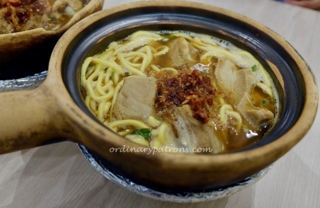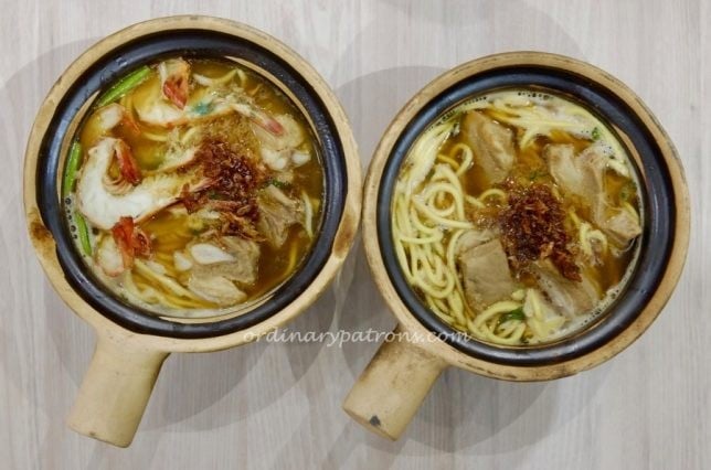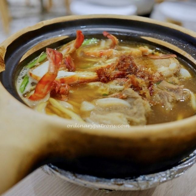 The noodles looked attractive were served in claypots. They were also useful in keeping the soup hot. The same broth is used for both and it was a very good tasting broth. The prawn taste is there but not overpowering.  The prawns were fresh and tasty. The pieces of pork rib were slightly tough. We would have preferred them to be soft till the meat falls off the bone easily. Other than that, we were happy with what we ate at Geylang Prawn Noodle T4.