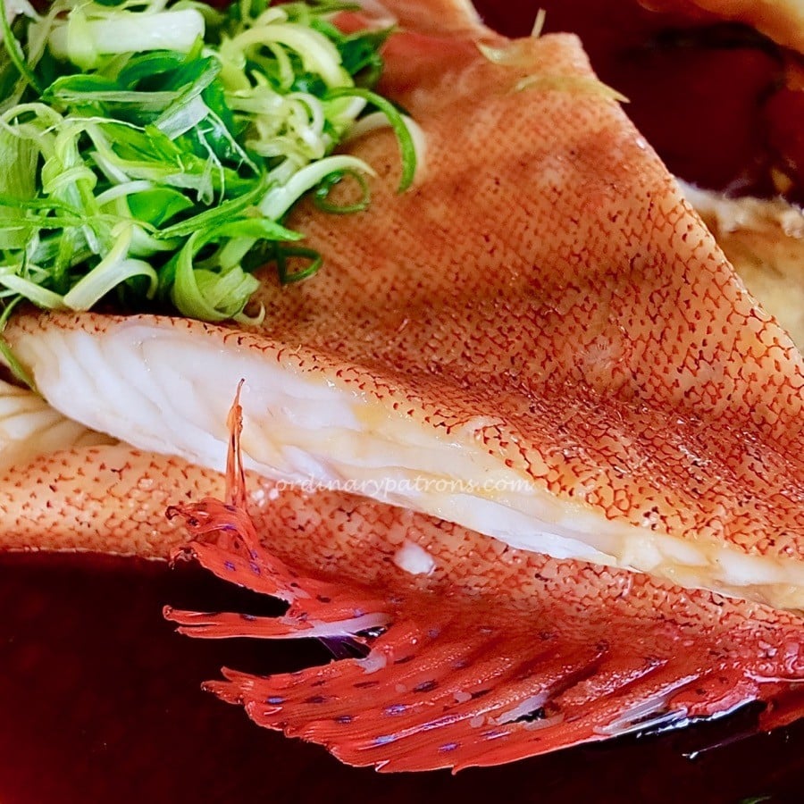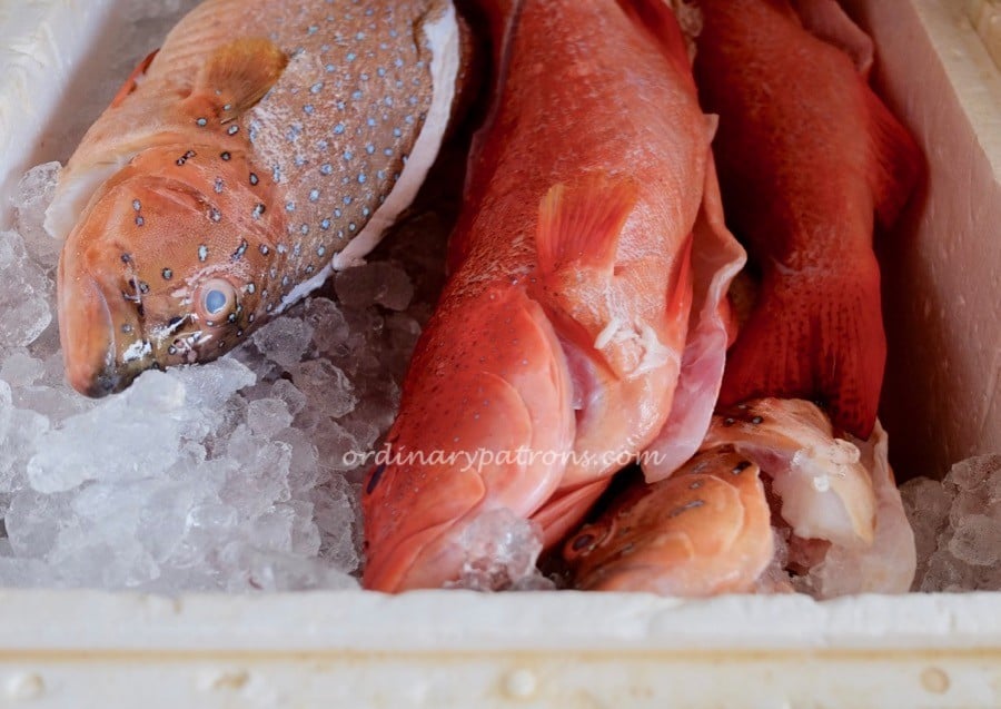 We have written about Zai Shun in an earlier post, we you can find more details about this Jurong East coffee shop style restaurant here. Â As usual, we avoided the lunchtime rush by arriving early. The table space was well stocked with all kinds of fish, all cut up and ready for cooking. We also peeped into the white storage boxes to check out what else was in store. It looked like there was a good catch of red groupers. They all look great with bright red colours. One particularly large one had been cut up into a few parts. We selected the tail part as it was easiest to manoeuvre.