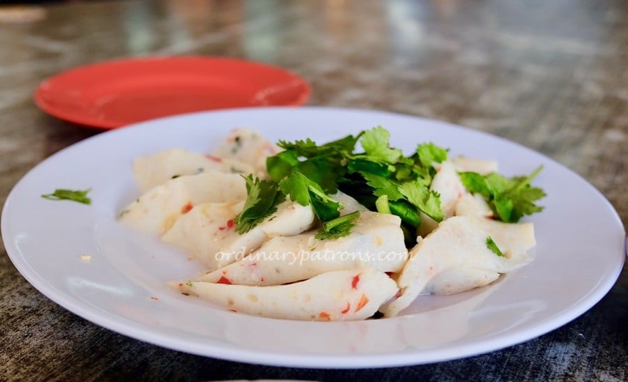 We started with the ready-made side dishes while the red grouper was getting cooked. Nothing fancy, just a couple of steamed rabbit fish, chap cai and fish cakes. All these go so well with the plain porridge.