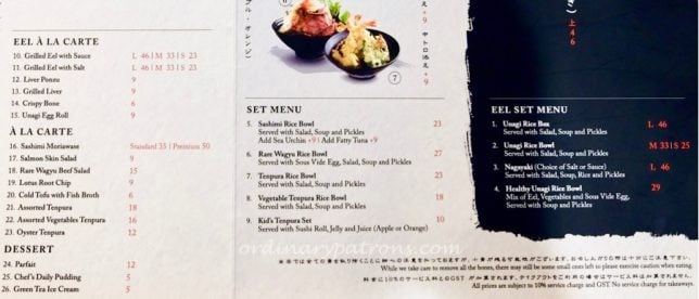 Apart from unagi which is the main event on the menu, there are other types of Japanese food available, such as sashimi and tempura. The range of dishes is sensibly kept narrow as it is clear that diners have mainly unagi on their minds when they visit Uya. Here are pictures of some portions from the Uya Unagi Singapore Menu