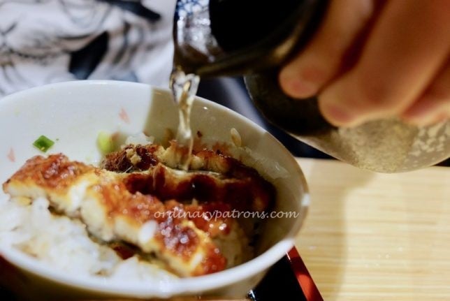 The three ways of eating Hitsumabushi is described in the menu. Eat it plain, add the condiments provided or make ochazuke with the dash broth provided. We liked the first and third ways.