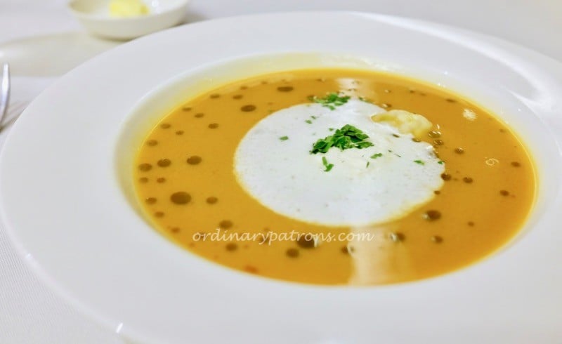 The lobster bisque ($17) was served in a generous portion. It was enough for two persons. The seafood taste was deep. We thought this was a good lobster bisque.