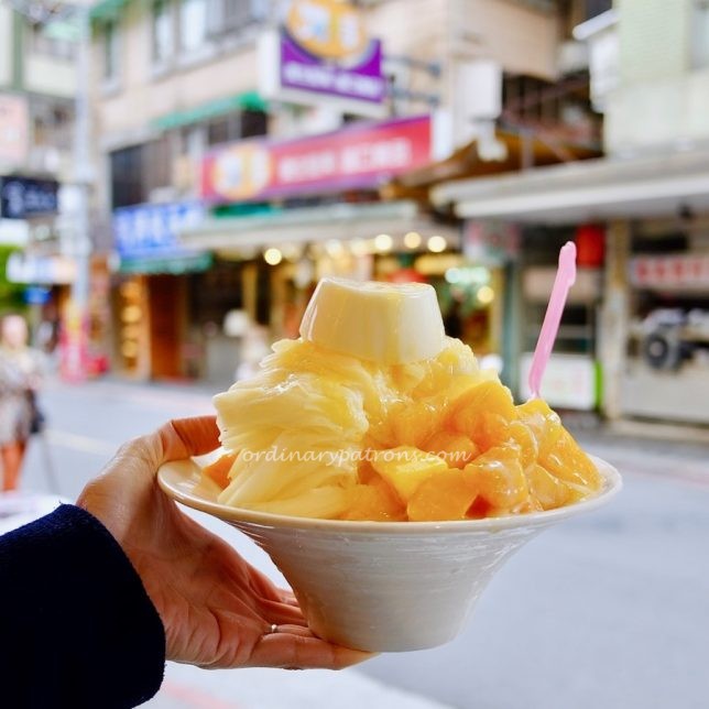 Finally, another place that seems to attract a lot of people is Smoothie House. Â We joined the queue and ordered the ice shavings with mango (NT$210). Â This was the dish that most people were eating. It was a huge dish. Although we were sharing it, it was too much. Â The ice was finely shaved into sheets. There was a generous topping of mango cubes. The amount of coldness in the bowl was too much. We ate slowly to avoid brain freeze but still our mouths were almost numb with the cold.