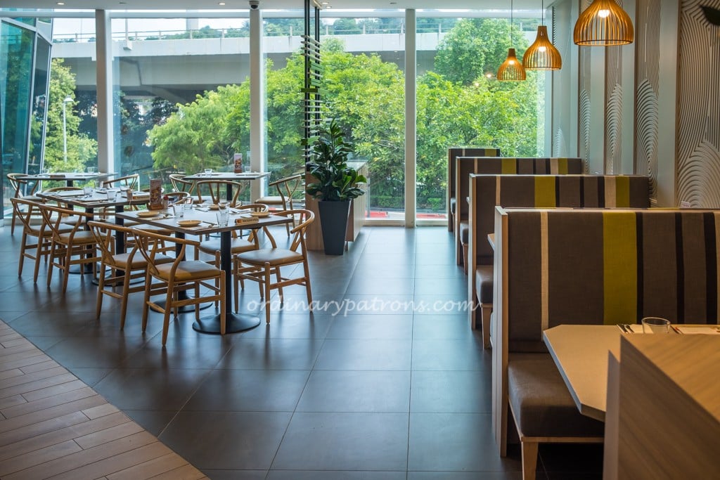 Elemen Harbourfront is located on level 2 of Harbourfront Centre, the shopping mall that is next to and physically connected to Vivo City. Shoppers from one mall can cross over to the other directly, sometimes even without noticing that they have done so. Elemen is right next to the boundary between the malls on level 2. It is a small restaurant but the bright, modern space makes it feel spacious.