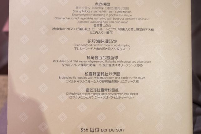 Here are pictures of the Shang Palace dim sum menu, the $56 business dim sum set lunch and random pages from the a la carte menu.