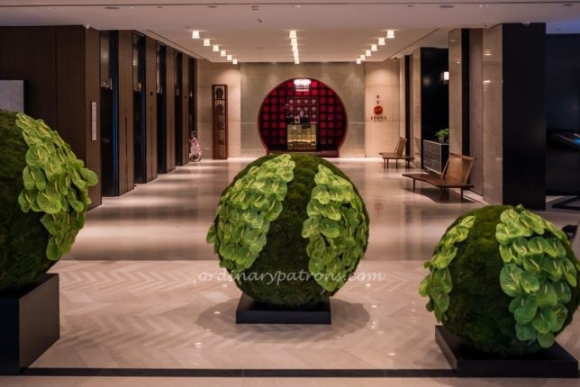 The hotel lobby area of the Shangri La Singapore is probably the grandest in the Lion City. The huge space was spruced up recently, giving it a touch of modernity to balance the heavy marble clad surfaces. The Shang Palace Chinese restaurant however remained largely the same. The main difference that we spotted was the addition of a wine display area.