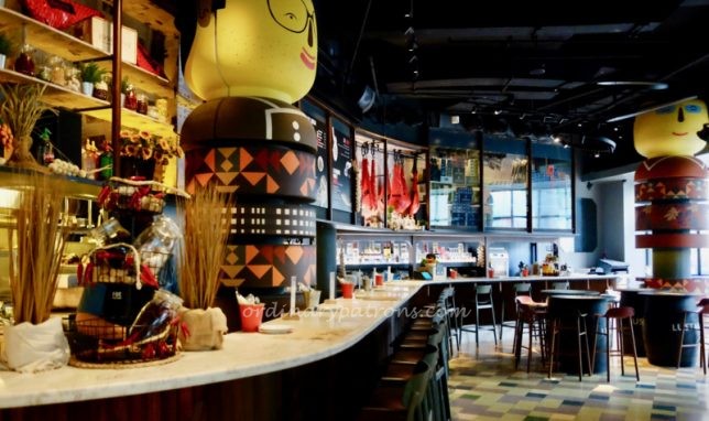 The nicest area is still the bar area where the big head giant dolls project a lighter mood to the atmosphere. Speaking of atmosphere, we thought that there was a big difference between dining at night and in the day. The place looks bright and sunny in the day and broody in the night, thanks to the use of dim lighting in the restaurant area.