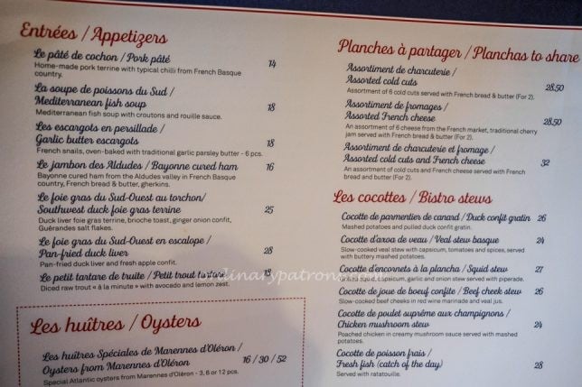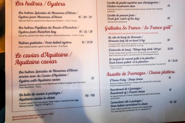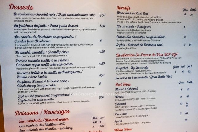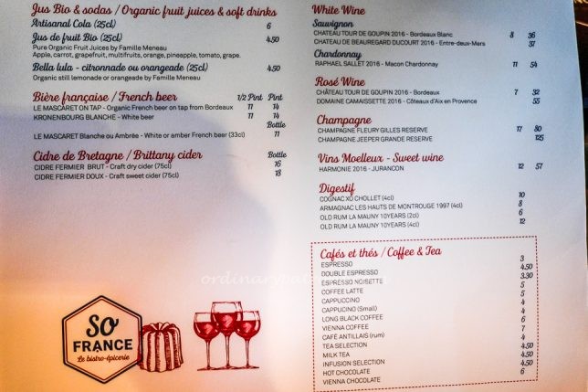 According to the So France website, their concept is stated as follows:  “Start living a true French experience in the heart of Singapore!”. As to why the “So France” name, we were told that it reflects their concept of presenting a fully French experience. “So” also sounds like sud in French. The cuisine and products offered at the bistro and epicerie are mainly from the Sud-ouest (south-western part of France). Here are pictures of the So France Singapore Menu.