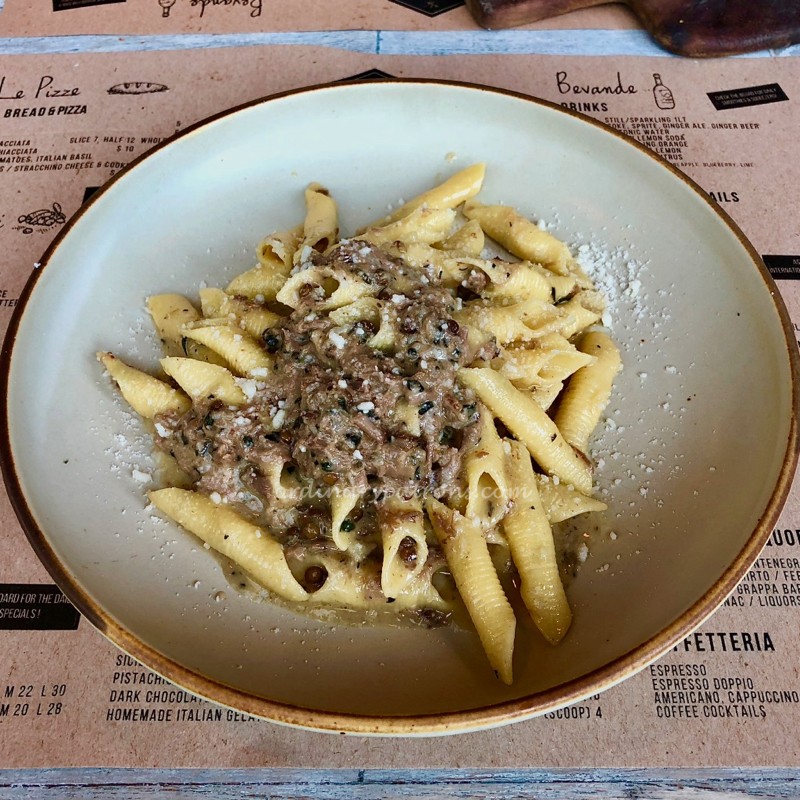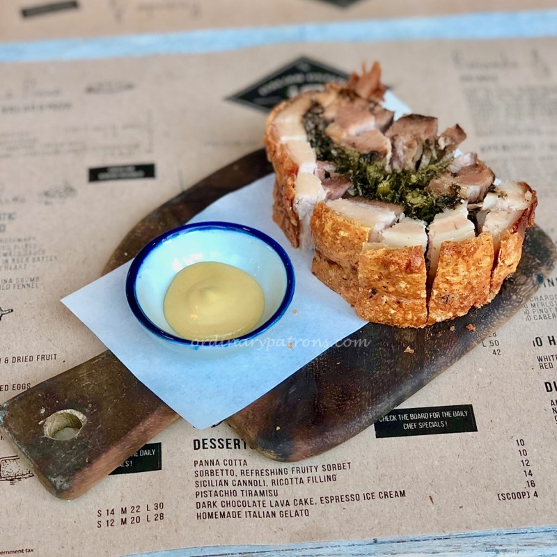 We tried the baked pork belly ($18) from the Small Bites of Authentic Italian Street Food section of the menu. The thick slice of meat was thoughtfully cut down to bite sized portions. The taste of this was good. The crackling was crisp and there was no porky taste. Yes it was fatty, as can be expected, but not overly so.