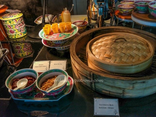 If you want good local food but do not want to stand in queue in hot and humid surrounding or you want a fair selection of food but do not fancy being caught in an uncivilised fight for oysters or sashimi, then Shangri-La Peranakan Buffet Lunch at The Lobby Lounge may be the perfect option. Top notch Shangri-La service, a refined and calm atmosphere and good food make The Lobby Lounge Shangri-La Singapore a great place to savour the best of Singapore’s heritage delicacies.
