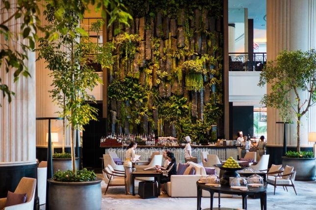 The Lobby Lounge, at the renovated Tower Wing of Shangri-La Hotel Singapore, looks like one of the places featured in tai tais magazines. There is an air of style and sophistication in the indoor garden setting. A section of the lounge feels like a stately dining room of an old world mansion. Most tables will get a good view of the lush greenery outside and a few seats overlook the swimming pool.