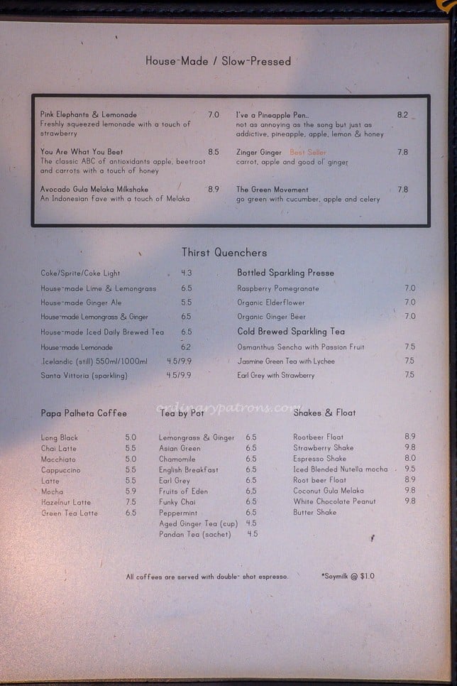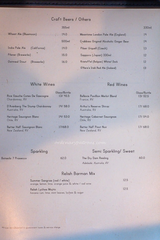 Here are pictures of some pages from the Relish @ Cluny Court Menu and drinks list.