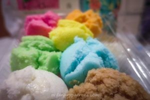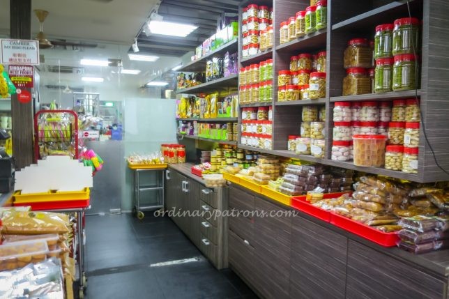The retail section is the other shophouse.ย Walk into the shop in Joo Chiat and you will see shelves and stacks of cookies and Nyonya kuehs of all shapes and sizes in rainbow colours on display. The decor is basic but the place has an old world charm.