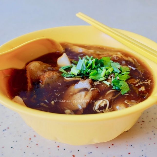 Tiong Bahru Lor Mee is a popular stall so expect a queue during peak hours. The noodles are reasonably priced with bowls ranging from $3 to $5. I usually have the $4 version which is more than adequate. The secret of lor mee is the dark broth which has a complex flavour. Receptacles containing vinegar, chilli and minced garlic are available at the counter for customers to increase the level of these flavours. I usually add a couple of teaspoons of garlic into mine.