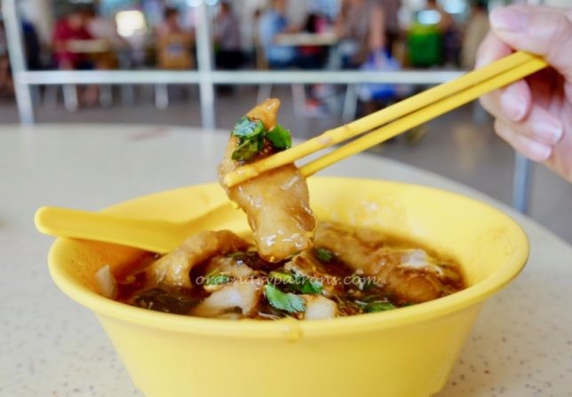 Tiong Bahru Market and Food Centre needs no introduction. It is the centrepiece of the many food places in the Tiong Bahru area. The food centre is located on the second level, above the market on the ground floor. It is well known for many types of food. My favourite stall there is Tiong Bahru Lor Mee, the stall that sells lor mee – noodles in thick dark broth.