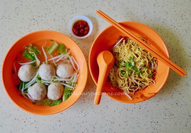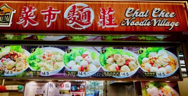 In close proximity to Tiong Bahru Lor Mee is another noodle stall – Chai Chee Noodle Village 菜市麵 莊. They serve fishball and meatball noodles in either the “dry” or soup style. We elected for a dry skinny noodles with meatballs ($4).