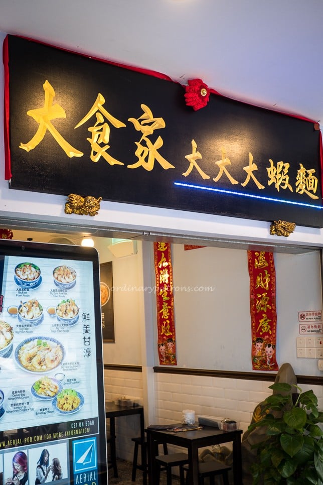 Da Shi Jia Big Prawn Mee 大食家大大大虾面 is a new restaurant along Killiney Road, a few doors away from the famous Killiney Coffee Shop. We were attracted to it by its name, especially in Chinese which emphasises the size of their prawns. It is also a very focused restaurant – with almost all its dishes being some form of prawn noodles. Mind you this is not just a stall in a coffee shop. It is a whole restaurant by itself. We could not resist stopping by for lunch.