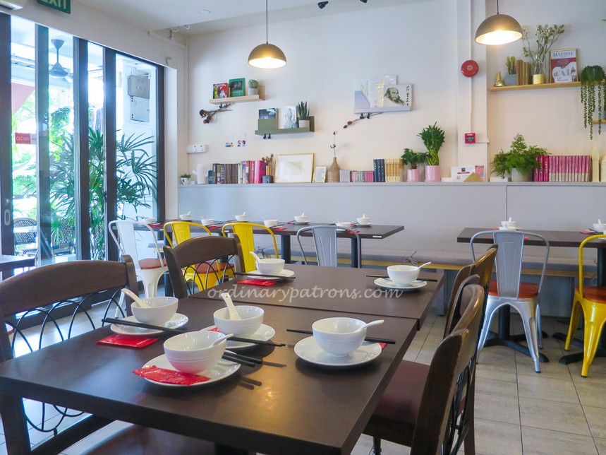 SHAO 烧 occupies the ground floor of a corner shop house. The outdoor sitting area is enhanced with enough leafy plants to make it look like a porch of an avid gardener. There are more plants indoor where the decor is fairly simple, The whitewashed walls are decorated with paintings, books and accent pieces. There is a homely atmosphere and it is easy to feel comfortable and relaxed there.