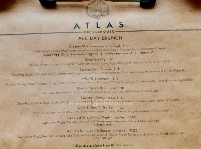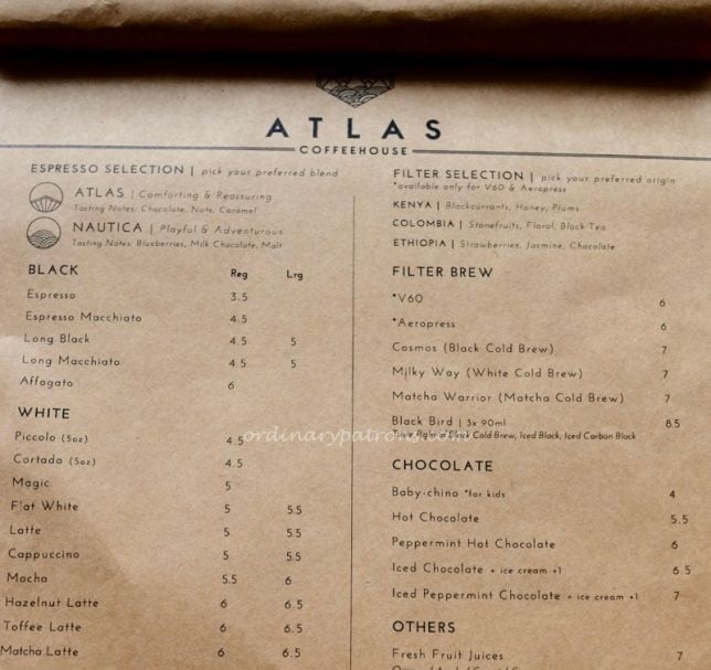 We have not seen the word “coffeehouse” used in a long while. We associate the word with the cafes of the 70s such as the Skillets Coffeehouse in Supreme House. At that time it was used to denote a trendy Westernised restaurant. Then in the 90s the description fell into disuse. Coffeehouses were no longer in fashion. But like all things fashionable, they (like bell bottoms) do come back. Atlas Coffeehouse is located in Singapore’s equivalent of the Flatiron Building in New York City. While not as tall as the one in NYC, No 6 Duke’s Road is also a building with a sharp corner at the junction of Bukit Timah and Duke’s Road. The star occupant at this building is Atlas Coffeehouse on the ground floor. ย Almost in the middle of nowhere, we were surprised to see a bustling cafe with full occupancy on a weekday morning.