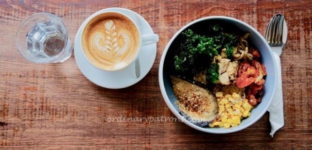How can we resist ordering an Atlas SuperBowl ($18) on our first visit to Atlas Coffeehouse.ย It contained toasted quinoa, sun-dried tomato, roasted sesame pulled chicken and assorted vegetables – essentially a healthy dish. We liked how the various components combined with each other to make a delicious dish. It was also an easy to handle dish. Just scoop and eat whatever falls inside the spoon.