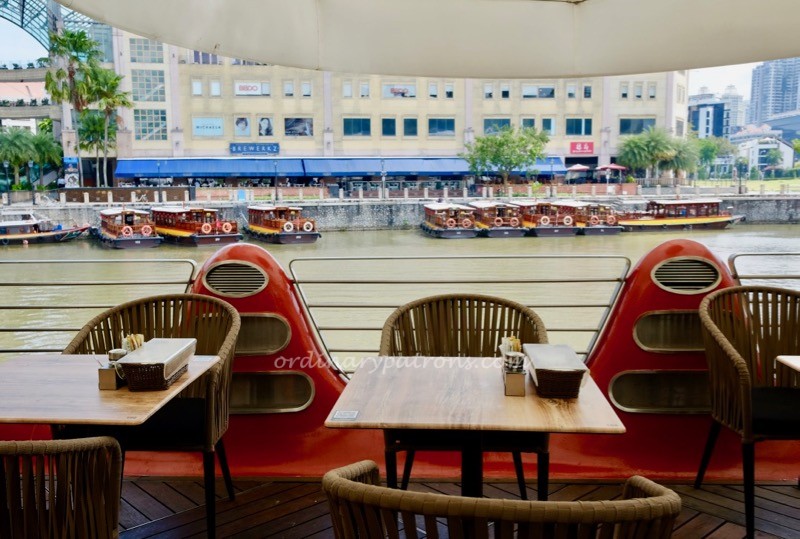 The air-conditioned dining area was the preferred area and was packed. The outdoor area was also available but there were hardly any takers. We did not see the logic of queuing outside for a table inside when we could just get a table outside straightaway. Not as cool but there is a direct view of the Singapore River.