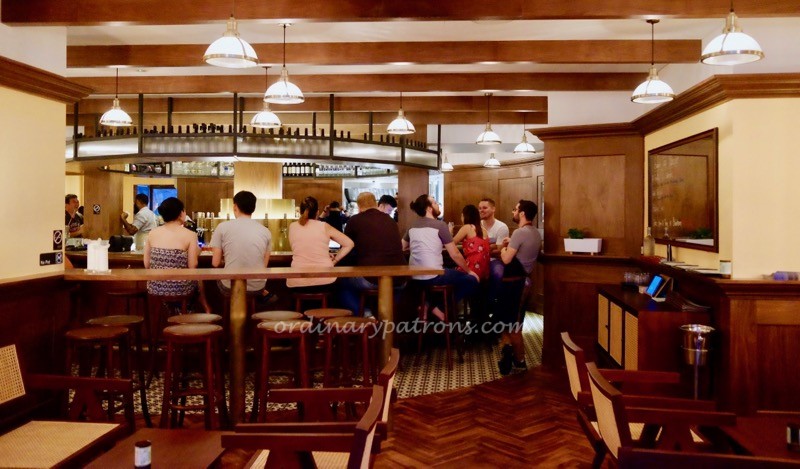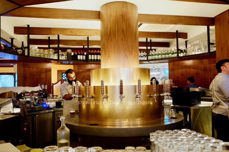 Like moths to a solitary light at night, the early drinkers assembled around the centrepiece at The Guild Singapore. The beautiful circular bar with many dispensing taps is good enough reason to make a visit. The rest of the place was tastefully done up. The bare brick walls, heavy wooden overhead beams and dim interior created an impression of dining in an underground cavern.